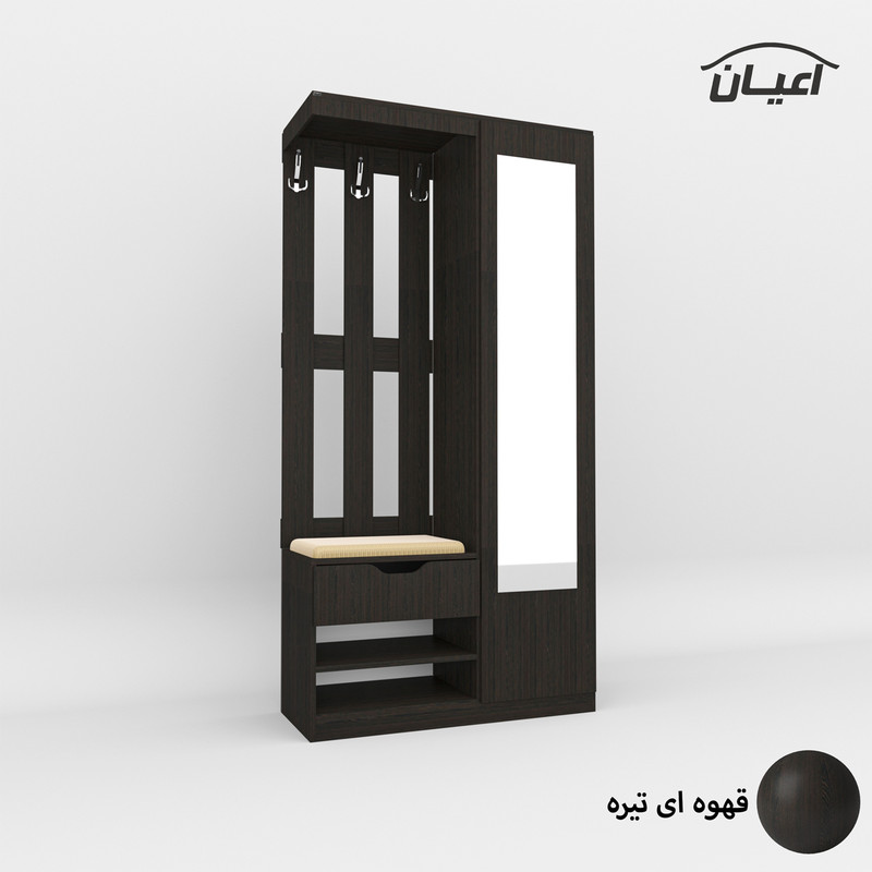 جاکفشی اعیان.جنس نئوپان ملامینه.دارای یک درب کمدی شامل هفت طبقه و هشت فضا.طراحی مدرن.دستگیره به صورت مگنتی.دارای یک کشو با دستگیره سی ان سی.و دو فضای مجزا.روی درب دارای آینه قدی می باشد.دارای فضای نشمن لمسه پارچه مبلی کرم رنگ می باشد.فضای نشمین دارای فضای آویز لباس است-ارسال در بسته بندی با برند و لوگو اعیان.تنها در صورتی کالای انتخابی مطابق با تصاویر و مشخصات درج شده خواهد بود که هنگام انتخاب فروشنده، فروشنده رسمی برند اعیان که با تیک آبی مشخص شده است را انتخاب نمایید.xهنگام خرید و دریافت کالا به بسته بندی و لوگوی برند اعیان دقت فرمایید. این کالا توسط برند اعیان در رنگ های سفید/مشکی/قهوه ای/گردویی/قهوه ای روشن/ قهوه ای تیره(ونگه)/طوسی و چندرنگ(طوسی و سفید) تولید می شود.