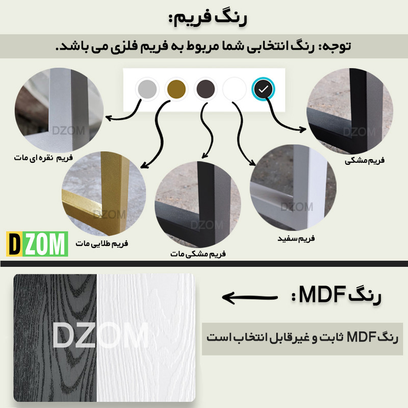 سایر توضیحات : جنس صفحه MDF درجه یک با رویه ضد آب / زیر صفحه MDF کلاف فلزی کار شده است / پایه های فلزی جوشکاری شده و یکپارچه بدون لقی (نسبت به اتصالات پیچ و مهره) / پوشش رنگ فلز: رنگ کوره ای الکتروستاتیک (یکنواخت، ضد خش و بسیار با کیفیت)