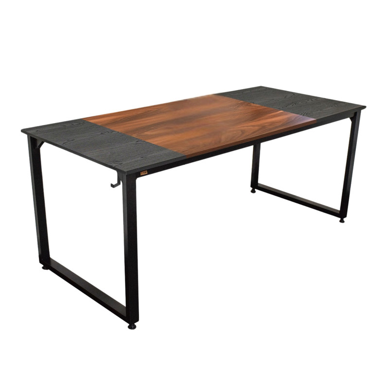 صفحه میز از جنس MDF درجه یک برجسته طرح چوب با ترکیبی از دو رنگ مشکی و قهوهای است. این محصول با طول 150cm، عرض 80cm و ارتفاع 75cm عرضه میشود.