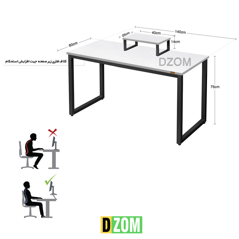 میز دیزم DZom مدل CD_LI100_140_W محصولی سبک، شیک و در عین حال جذاب و کارآمد از سری تولیدات دیزم است. این میز که قابلیت استفاده به عنوان میز تحریر، میز کامپیوتر، میز جلسه، میز کار و حتی به عنوان یک میز اداری را دارد، از رنگ رویه الکترواستاتیک با ماندگاری و دوام بالا ساخته شده است. همچنین پایه های پیچی، قابلیت تنظیم نسبت به سطح زمین را دارد تا بهترین تراز جهت جلوگیری از تکان خوردن را ایجاد نماید. صفحه میز از جنس MDF درجه یک برجسته طرح چوب و به رنگ سفید است. این محصول با طول 140cm، عرض 60cm و ارتفاع 75cm عرضه میشود. به این نکته توجه شود که تنوع رنگ انتخابی کالا تنها مربوط به رنگ پایه های فلزی است.