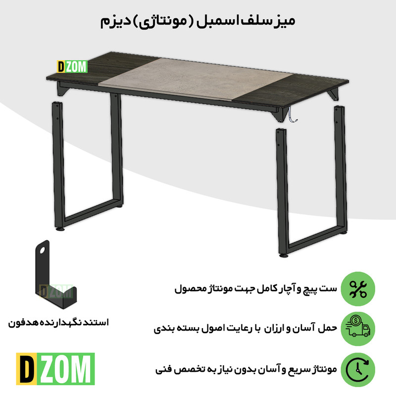 میز مدیریت دیزم DZom مدل مونتاژی TLD_asm_150×80_Tri_BAGR محصولی مونتاژی، سبک، شیک و در عین حال جذاب و کارآمد از سری تولیدات دیزم میباشد این محصول بصورت سلف اسمبل (مونتاژی) تولید شده است. این میز حمل و نقل آسان و هزینه حمل مقرون به صرفه ای دارد. این میز از پایه های فلزی با مقطع 50x30 میلیمتر و رنگ رویه الکترواستاتیک با ماندگاری و دوام بالا ساخته شده است. همچنین پایه های پیچی، قابلیت تنظیم نسبت به سطح زمین را دارد تا بهترین تراز جهت جلوگیری از تکان خوردن را ایجاد نماید. صفحه میز ترکیبی از MDF درجه یک برجسته طرح چوب به رنگ مشکی و MDF درجه یک به رنگ طوسی می باشد. این محصول با طول 150cm، عرض 80cm و ارتفاع 75cm عرضه می شود. به این نکته توجه شود که تنوع رنگ انتخابی کالا تنها مربوط به رنگ پایه های فلزی میباشد.