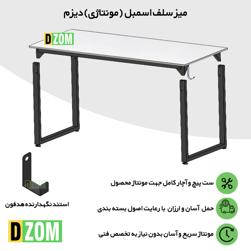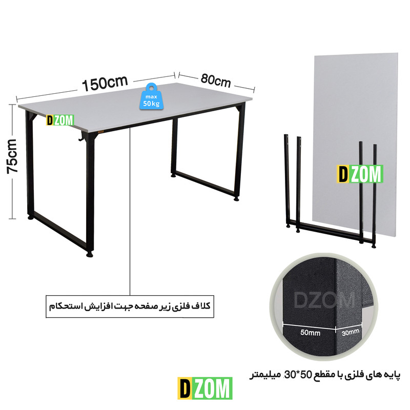 میز اداری دیزم DZom مدل مونتاژی TLD_asm_150×80_W محصولی مونتاژی، سبک، شیک و در عین حال جذاب و کارآمد از سری تولیدات دیزم میباشد. این محصول بصورت سلف اسمبل (مونتاژی) تولید شده است. این میز حمل و نقل آسان و هزینه حمل مقرون به صرفه ای دارد. مشتری گرامی توجه نمایید محصولات برند دیزم (شماره ثبت 414013 اداره ثبت علائم تجاری) با کیفیت و بسته بندی اصلی تنها توسط فروشنده رسمی دیزم در دیجیکالا عرضه میشود، لطفاً از خرید کالای تقلبی از سایر فروشندگان خودداری فرمایید. این میز از پایه های فلزی با مقطع 50x30 میلیمتر و رنگ رویه الکترواستاتیک با ماندگاری و دوام بالا ساخته شده است. همچنین پایه های پیچی، قابلیت تنظیم نسبت به سطح زمین را دارد تا بهترین تراز جهت جلوگیری از تکان خوردن را ایجاد نماید. صفحه میز از جنس MDF درجه یک برجسته طرح چوب به رنگ سفید می باشد. این محصول با طول 150cm، عرض 80cm و ارتفاع 75cm عرضه می شود. به این نکته توجه شود که تنوع رنگ انتخابی کالا تنها مربوط به رنگ پایه های فلزی میباشد.