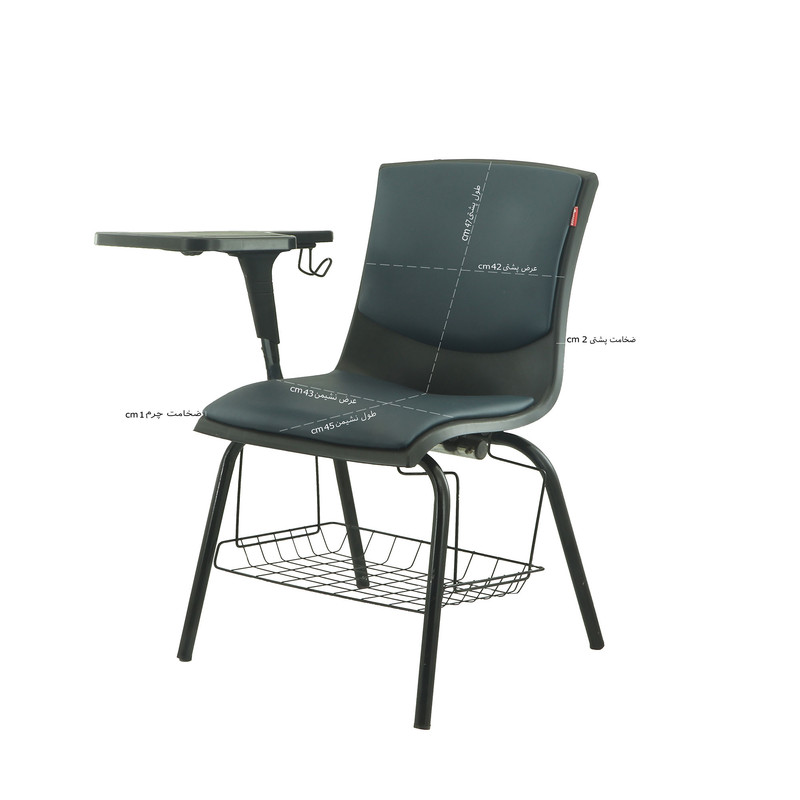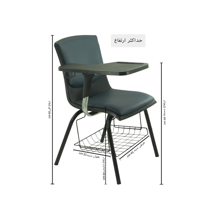 سایر توضیحات : - ارتفاع کلی: 85 سانتی متر - ارتفاع نشیمن: 48 سانتی متر - عرض کلی با احتساب دسته: 52 سانتی متر - طول کلی بااحتساب دسته: 66 سانتی متر - مناسب برای مدارس ، دانشگاه ها و آموزشگاه ها