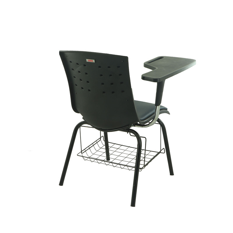 این صندلی دارای گیره برای آویزان کردن کیف و دارای سبد برای قرار دادن کتاب و وسایل دیگر است.