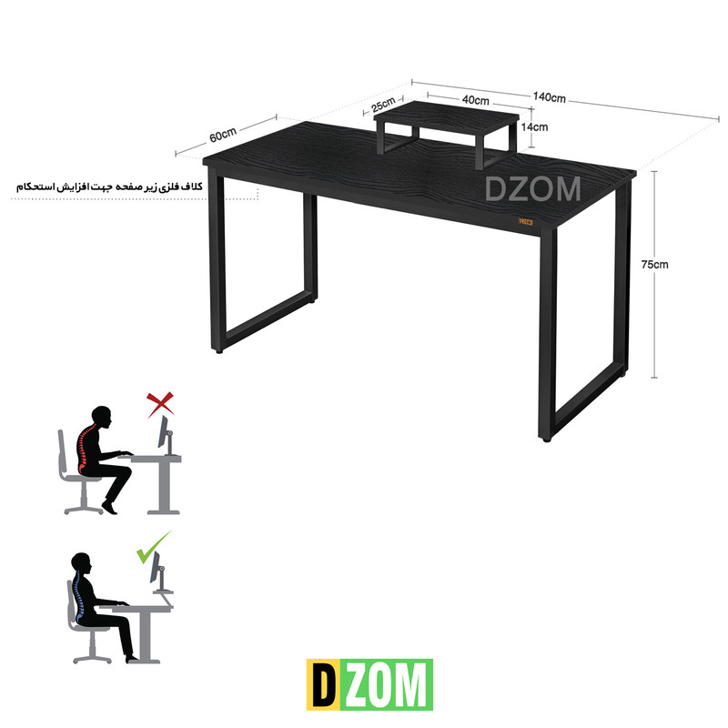 ابعاد میز : 140*60*75