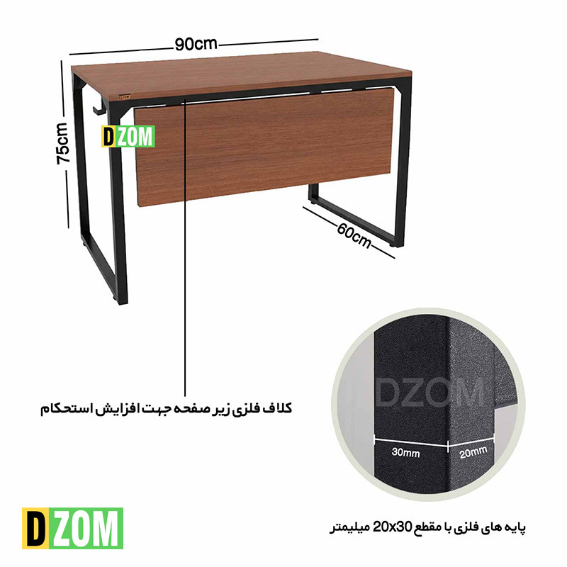 میز اداری دیزم مدل مونتاژی TLD_front_90×60_BRN