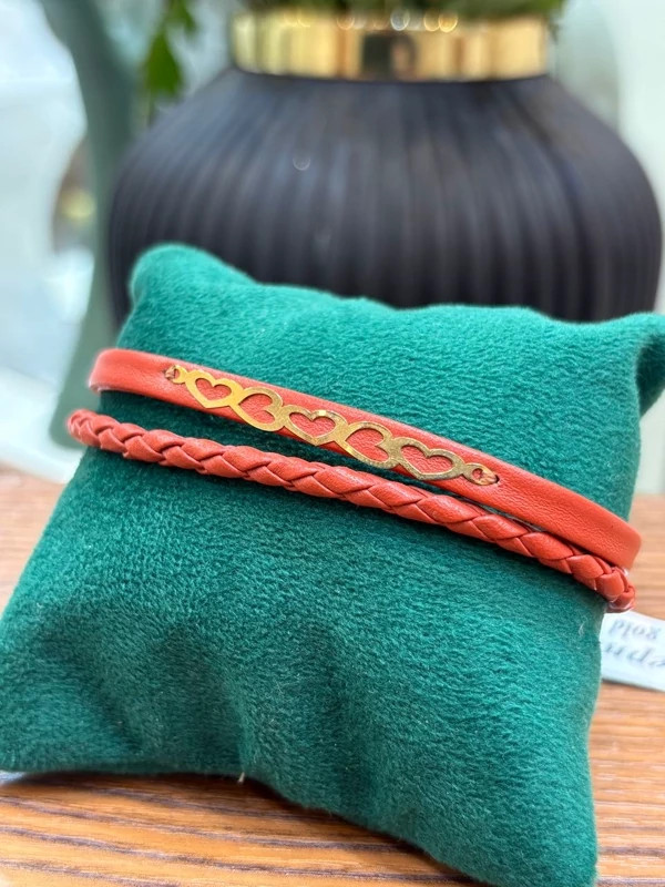 دستبند چرم با پلاک طلا با وزن 0/120 سوت