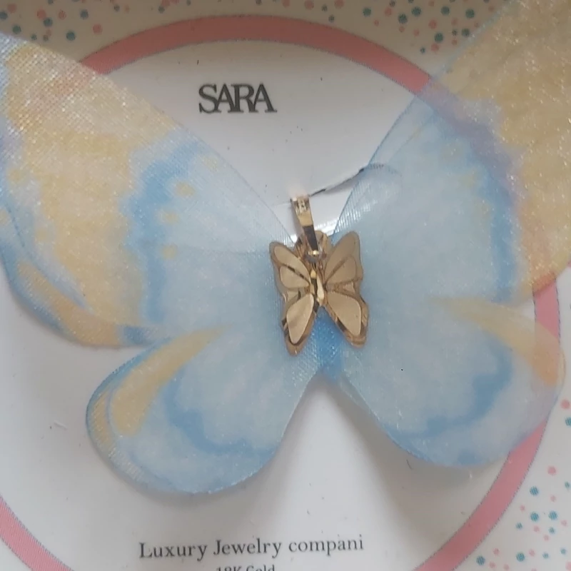 پلاک طلا 18عیار پروانه پارچه ای ودستبند ست کد 7