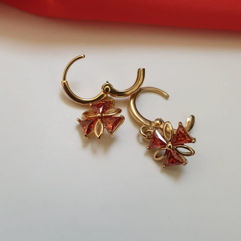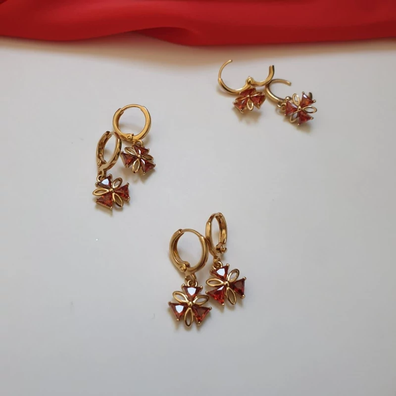 🌸 #گوشواره آویز نگین قرمز ژوپینگ