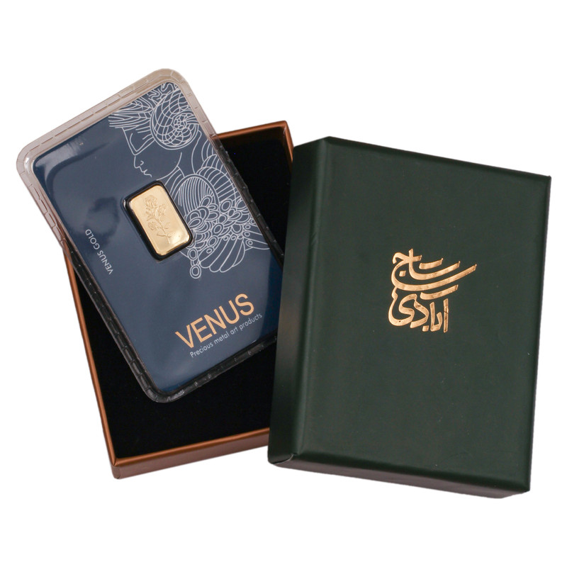 شمش طلا 18 عیار گالری تاج آبادی مدل مدل ونوس طرح گل رز کد T-0.100