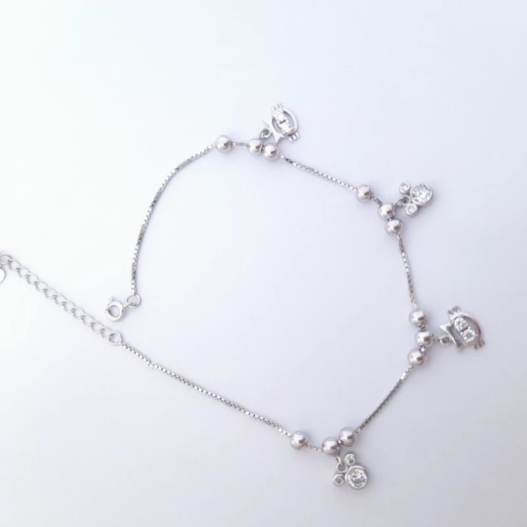 پابند زنانه نقره 925 عیار وارداتی آویز متصل و گوی تراش البرنادو وسنگ مارکو