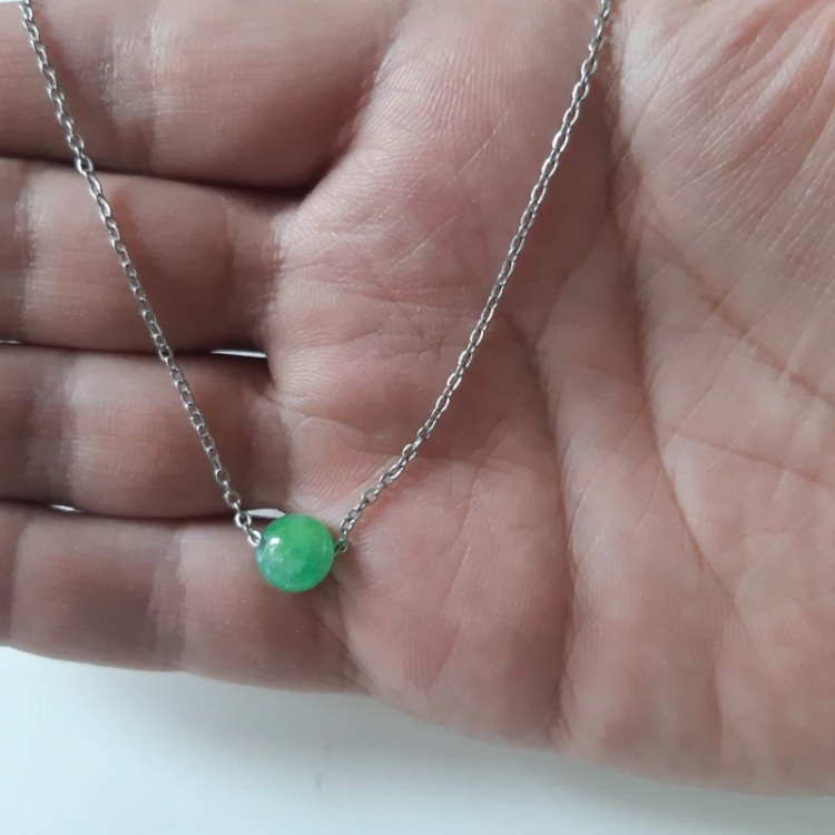 گردنبند جید سبز طبیعی با زنجیر استیل رنگ ثابت 45 سانتی