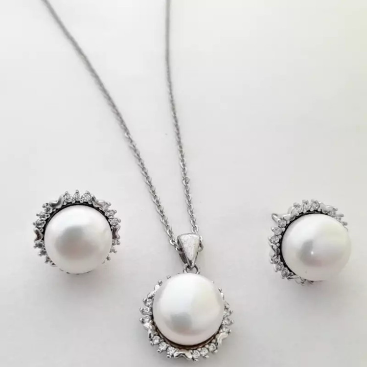 نیمست زنانه نقره 925 عیار مروارید پرورشی تمام واردات