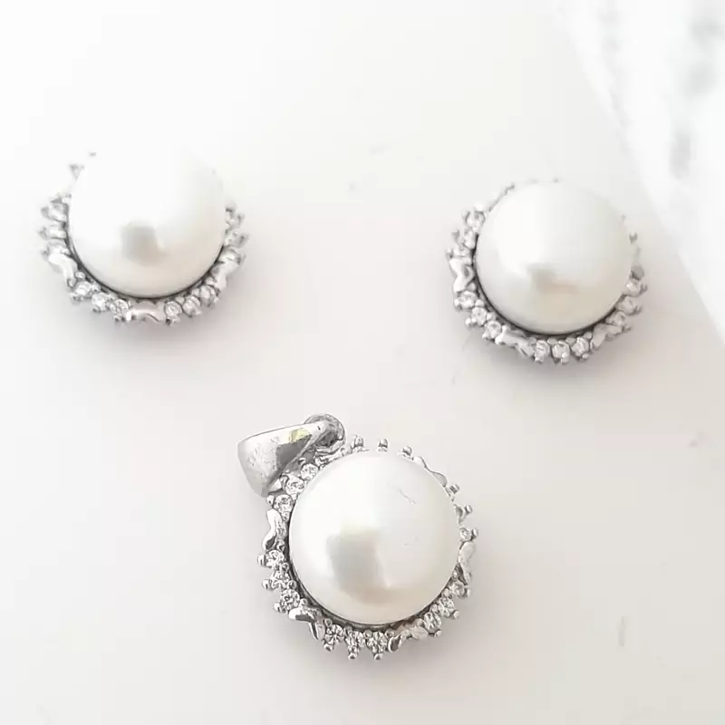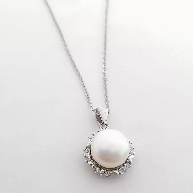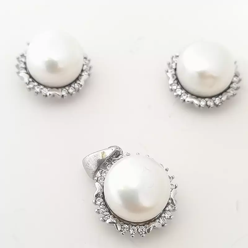 نیمست زنانه نقره 925 عیار مروارید پرورشی تمام واردات