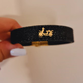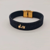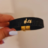 دستبند چرم و جین با پلاک طلا موتور