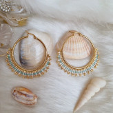 نیمست دستساز شامل گوشواره و گردنبند، ساختهشده با منجوقهای ژاپنی بسیار ریز و باکیفیت. رنگهای ملایم آبی، کرم و صورتی در کنار طلایی ثابت، ظاهری مدرن و مینیمال به این ست دادهاند.