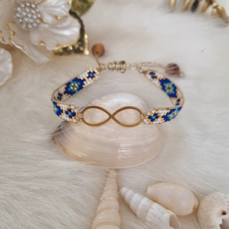 یه دستبند ظریف و خوشرنگ از منجوقهای اصل ژاپنی که با عشق و دقت بافته شده. قفل کشویی داره، یعنی بهراحتی اندازه میشه و روی هر مچی قشنگ میشینه!