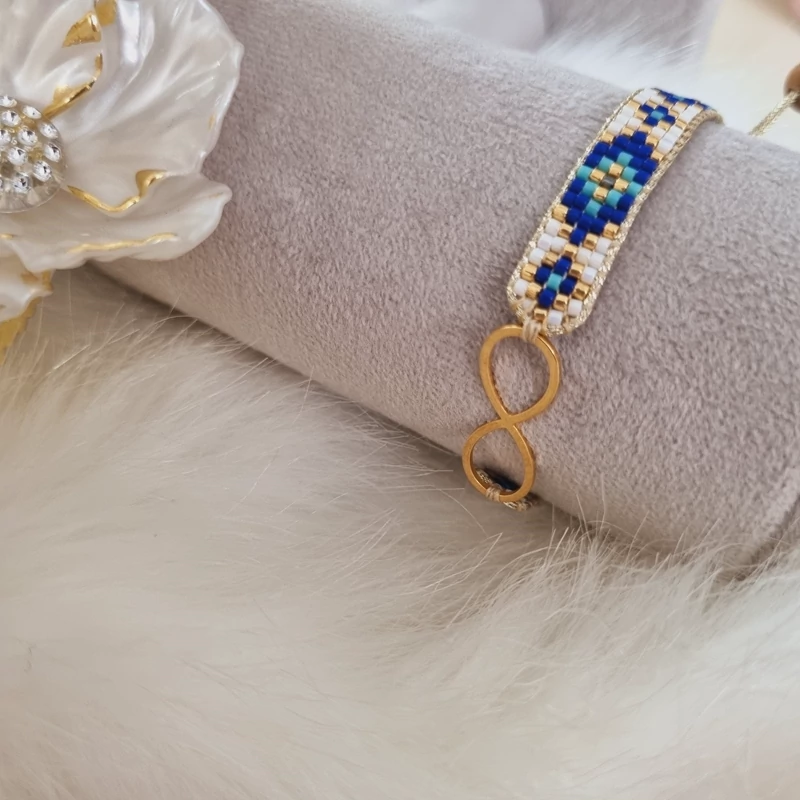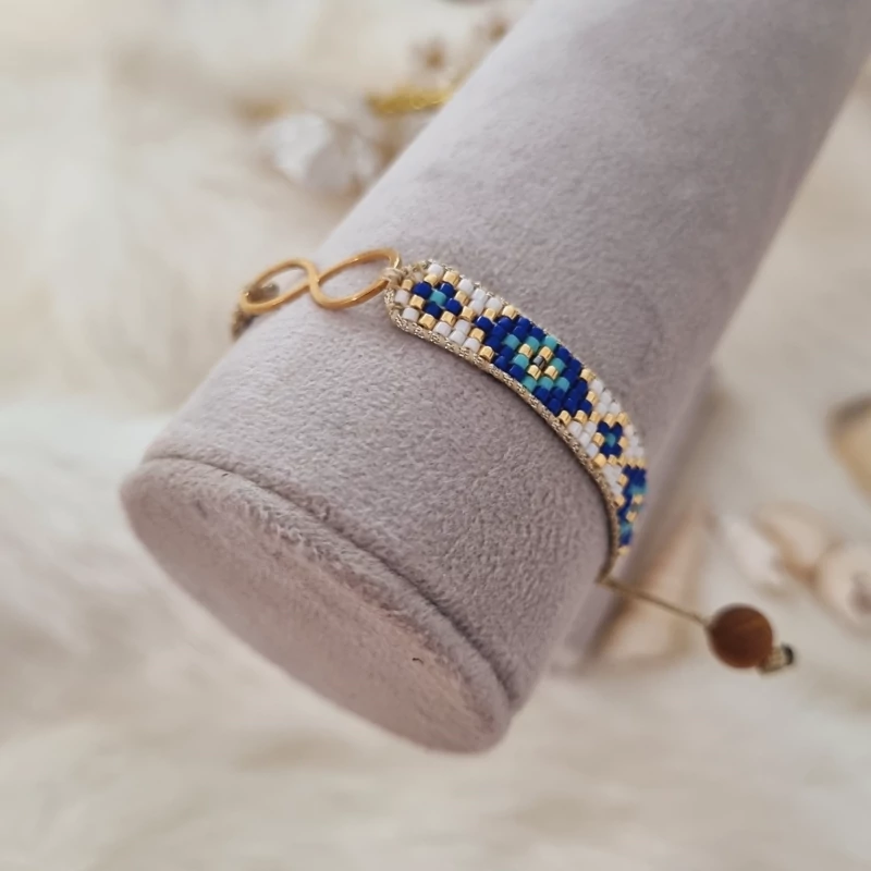 یه دستبند ظریف و خوشرنگ از منجوقهای اصل ژاپنی که با عشق و دقت بافته شده. قفل کشویی داره، یعنی بهراحتی اندازه میشه و روی هر مچی قشنگ میشینه!