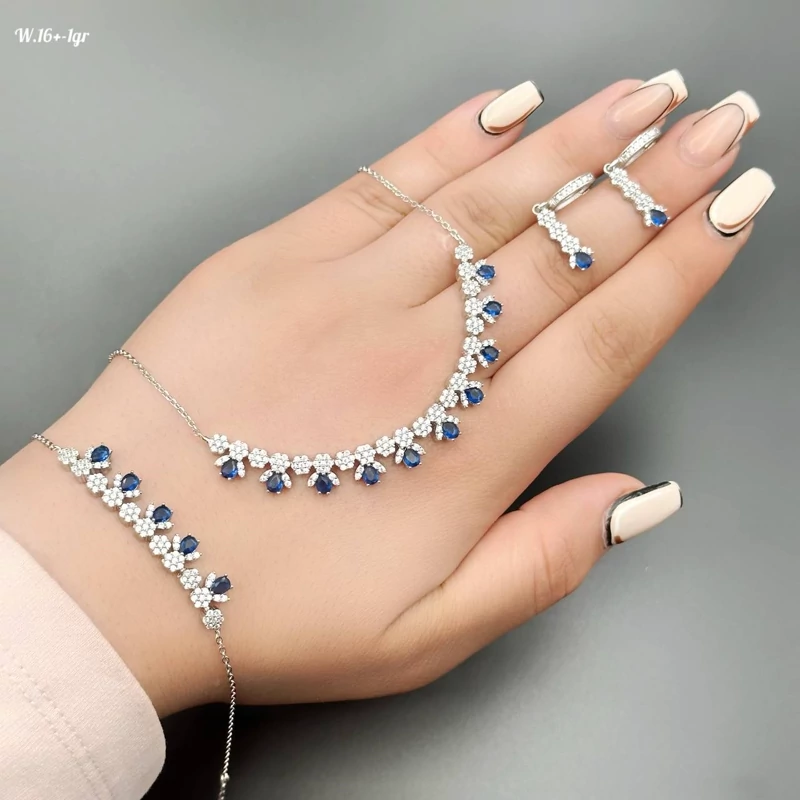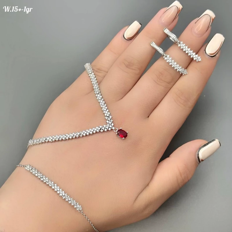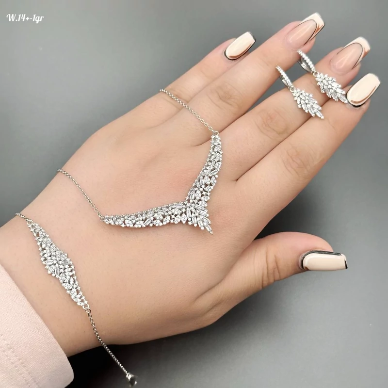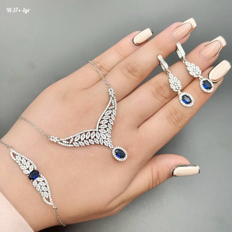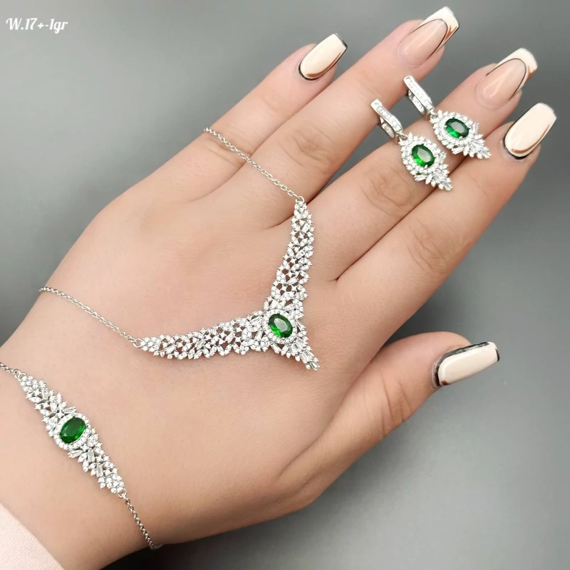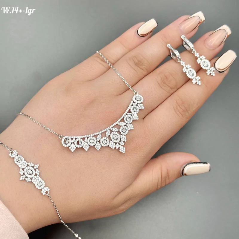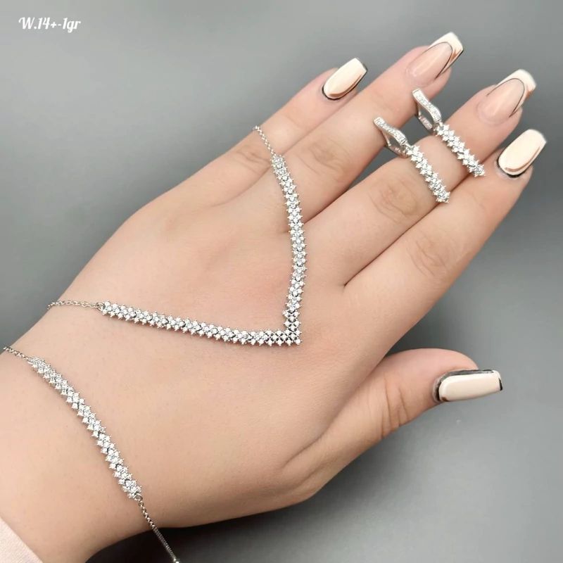 نیم ست سرویسی نقره زنانه عیار 925 روکش جواهری