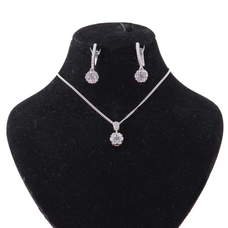 نیم ست نقره زنانه بازرگانی میلادی مدل گل جواهری فول نگین کد NTR409