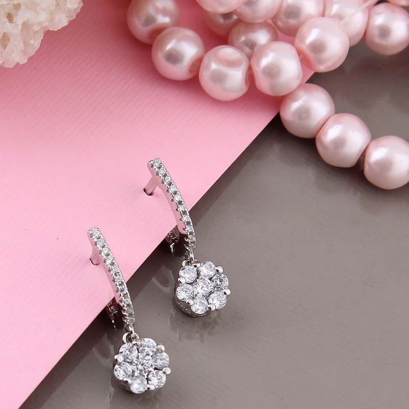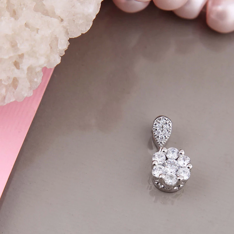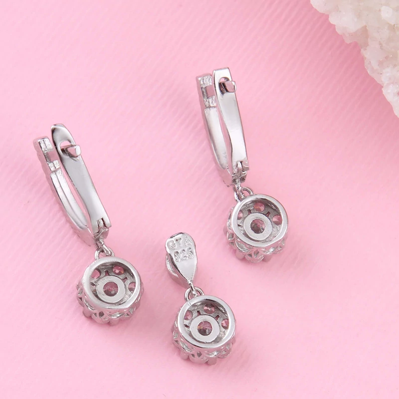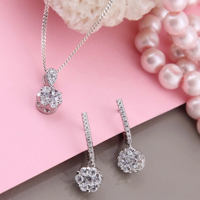 نیم ست نقره زنانه بازرگانی میلادی مدل گل جواهری فول نگین کد NTR409