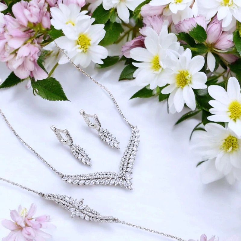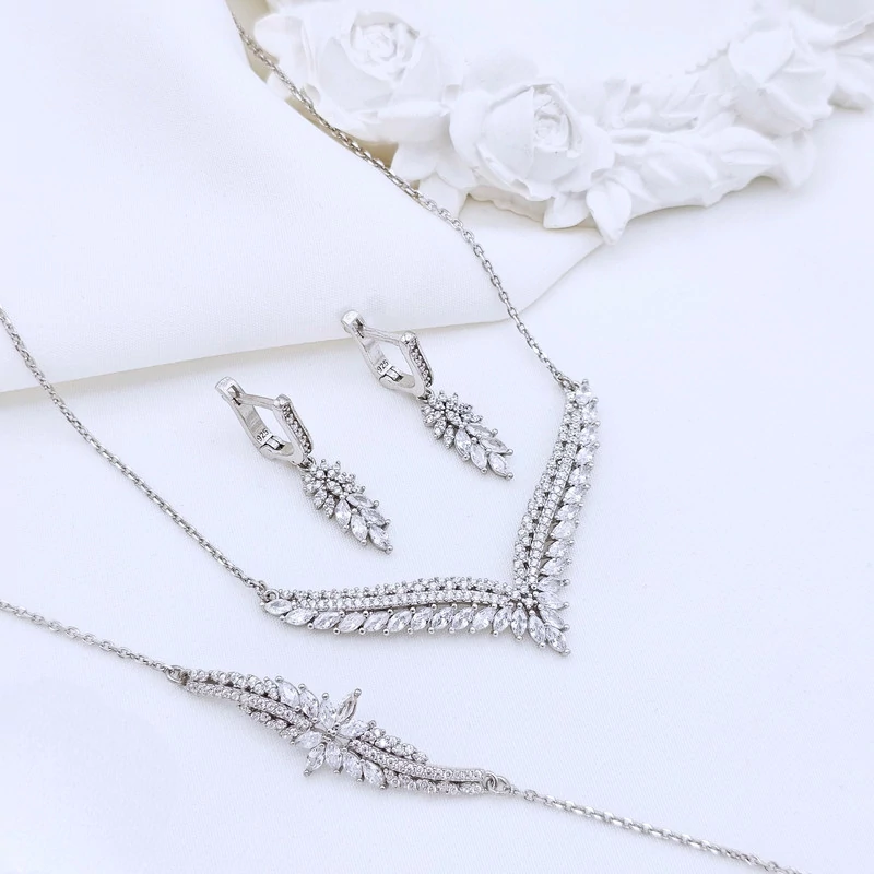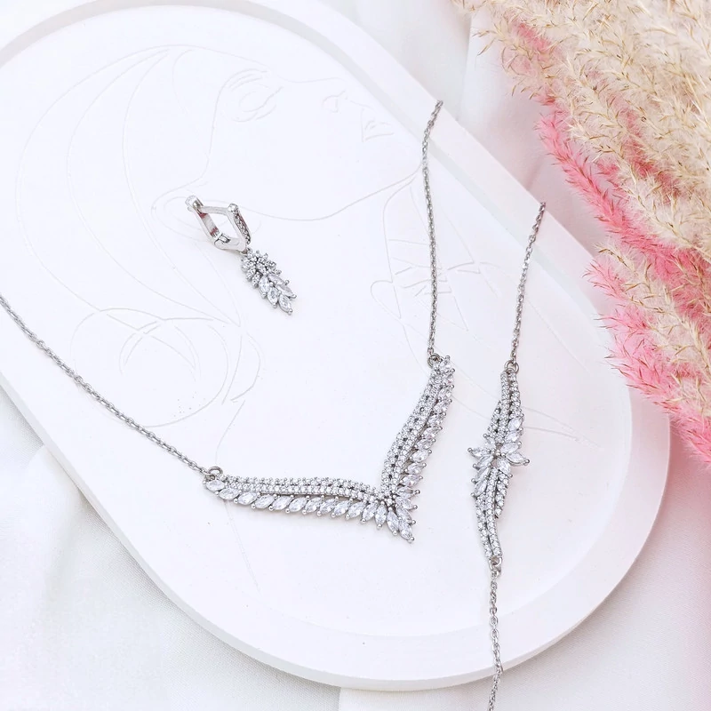 نیم ست نقره زنانه مدل مارکیز برگ انجیر 0246