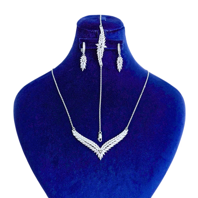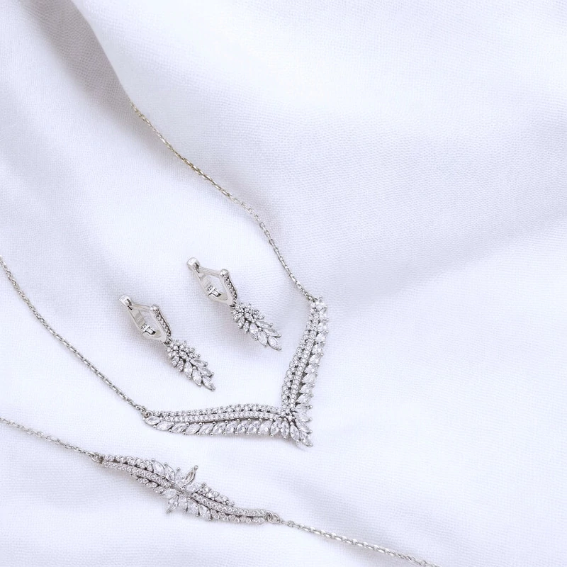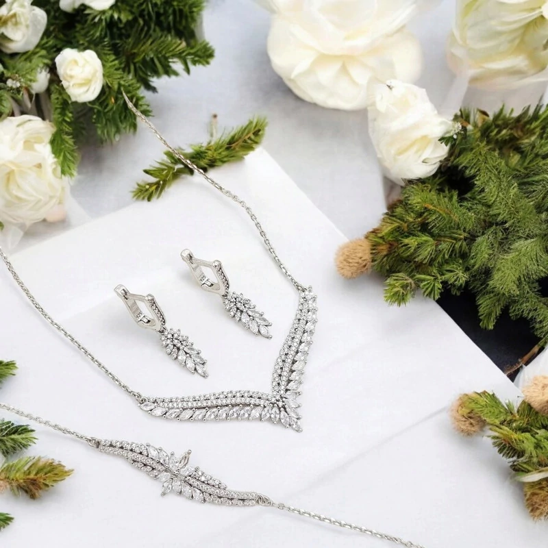 ست نقره زیبا و اعیانی از جدید ترین طراحی ها و به روز با کمترین اجرت ممکن برای شما عزیزان فراهم کردیم و این محصول با آب رودیوم پنج لایه برای ثابت بودن رنگ مادام العمر آبکاری نانو شده و ضد حساسیت و فاقد هرگونه حساسیت میباشد . لازم به ذکر میباشد این محصول داخل جعبه جواهرات درج شده در سایت برای شما عزیزان ارسال میشود