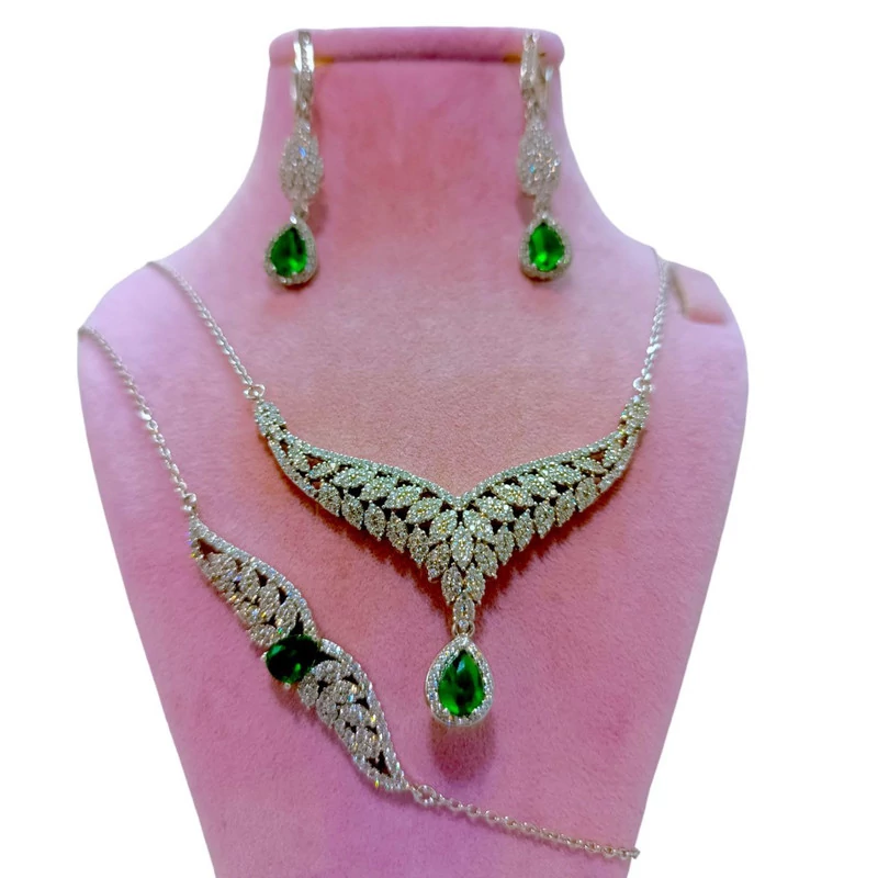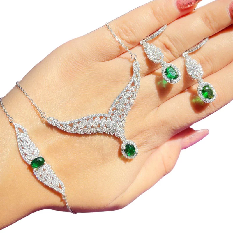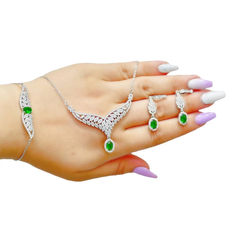 نیم ست نقره زنانه مدل زمرد شهر n.sh