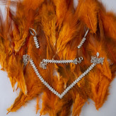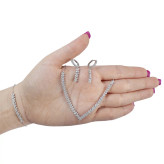 ست نقره زنانه به عیار 925 ،دارای روکش طلاسفید(رادیوم)می باشد،نگین های بکار رفته برلیان اتمی از جنس زیرکونیوم می باشند،کیفیت ساخت کار بسیار بالا بوده و در روکش آن از مواد حساسیت زا مانند نیکل استفاده نشده است،روکش طلاسفید و جلوه زیبا و درخشان کار باعث شده از نظر ظاهری تفاوتی با طلا نداشته باشد. نگین ها به روش میکروستینگ مخراج کاری شده اند و در برابر ضربه مقاوم هستند با این حال جهت جلوگیری از آسیب فیزیکی به کالا باید در برابر ورود ضربه شدید و تماس با مواد شیمیایی محافظت گردد.