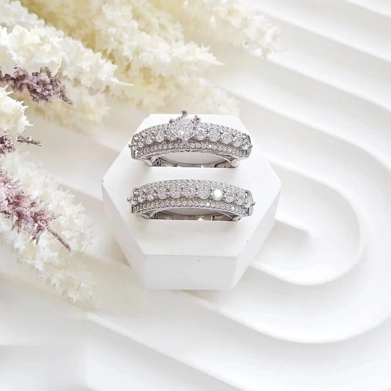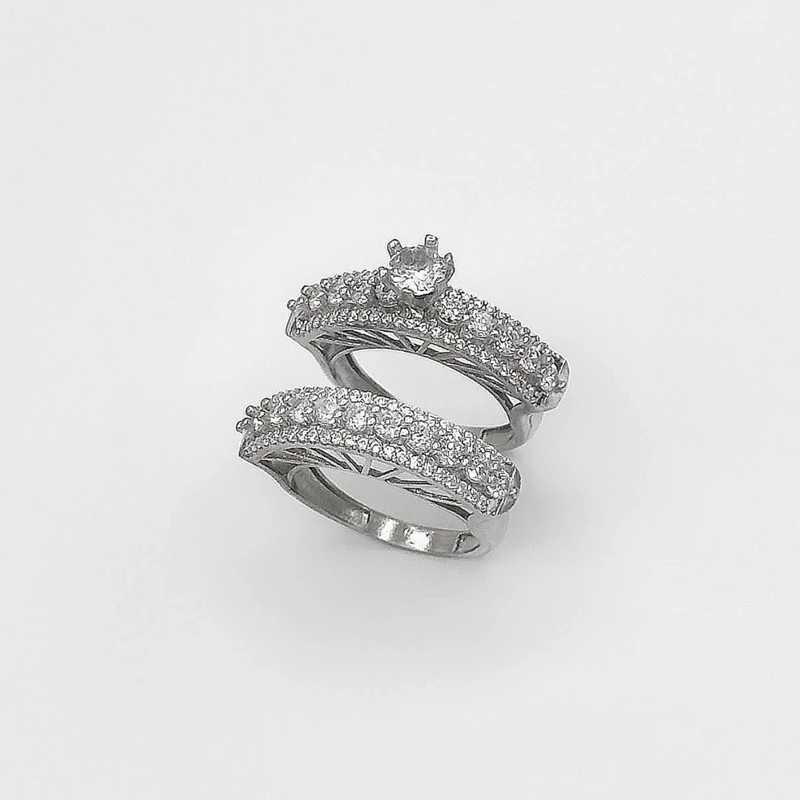 حلقه و پشت حلقه نقره زنانه به عیار 925 دارای روکش رادیوم(طلاسفید) میباشد.سنگهای بکاررفته ازنوع برلیان اتمی از جنس زیرکونیا می باشند،زیبایی خیره کننده این کار با روکش زیبا و نگین های زیرکونیا جلوه خاصی به کار بخشیده که میتوان به عنوان جایگزین طلا استفاده کرد،لازم به ذکر است روکش انگشتر رادیوم خالص بوده و در آن از مواد حساست زا مانند نیکل استفاده نشده است. نگین ها به روش میکروستینگ مخراج کاری شده اند و در برابر ضربه مقاوم هستند با این حال جهت جلوگیری از آسیب فیزیکی به کالا باید در برابر ورود ضربه شدید و تماس با مواد شیمیایی محافظت گردد.