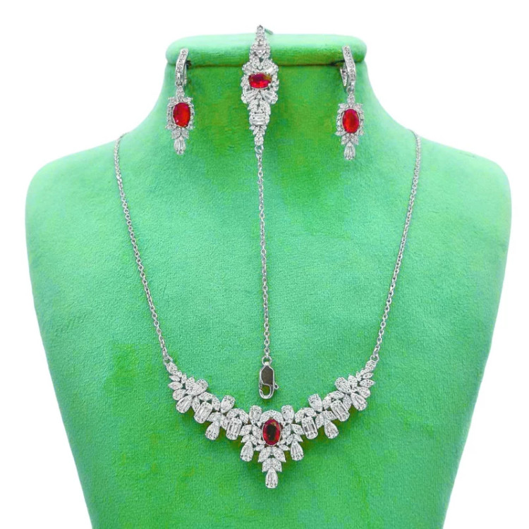نیم ست نقره زنانه مدل یاقوت سرخ کد 092