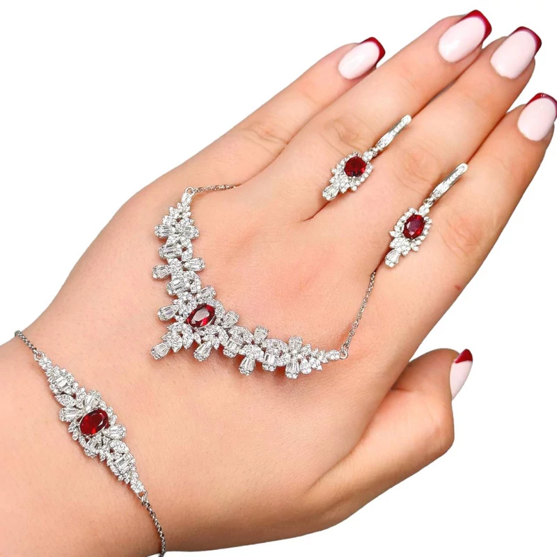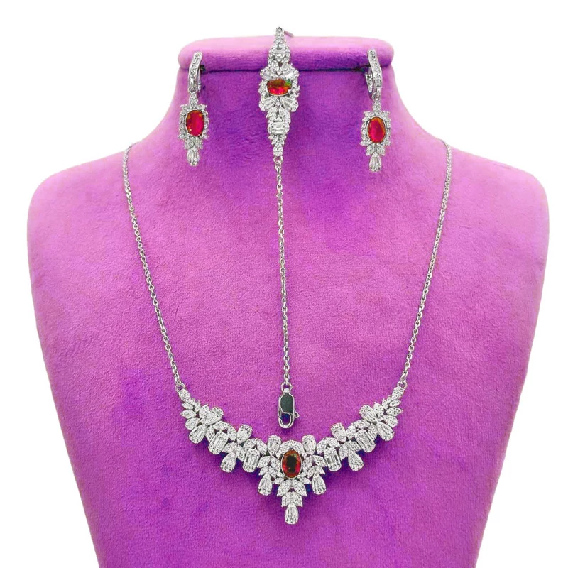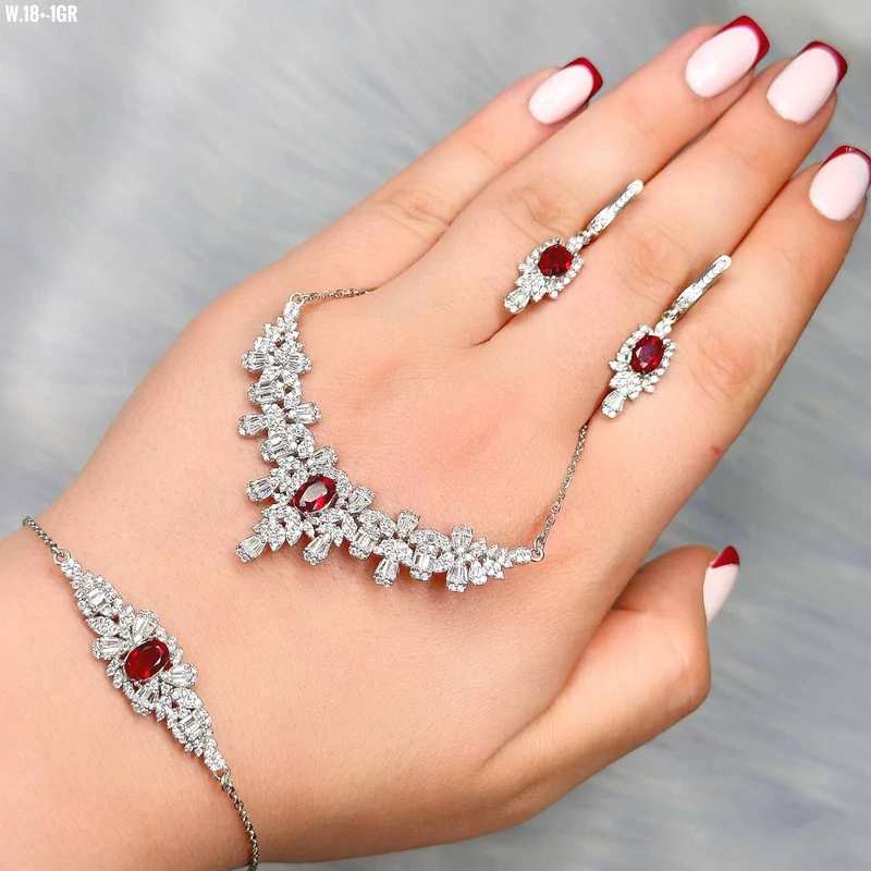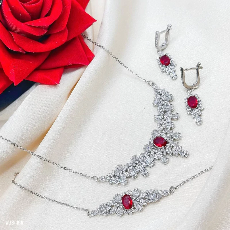 نیم ست نقره زنانه مدل یاقوت سرخ کد 092