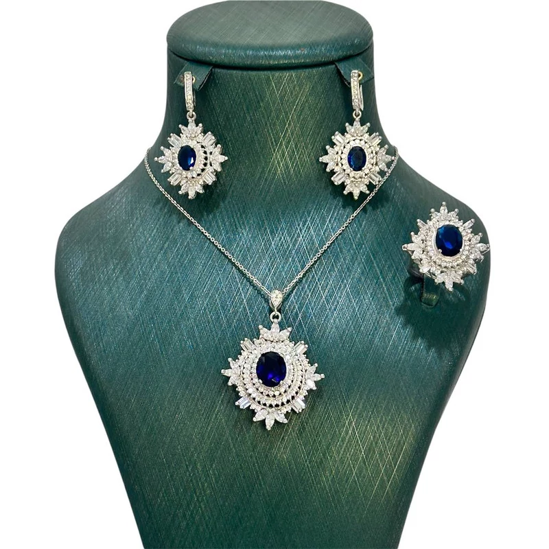 نیم ست نقره زنانه مدل یاقوت کبود شهر 0226
