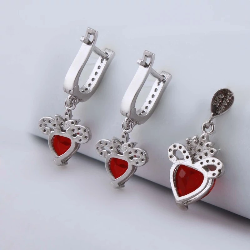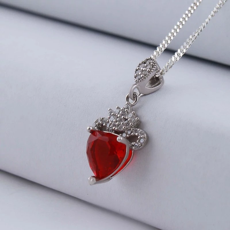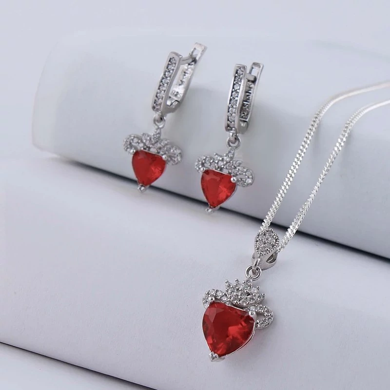 نیم ست قلب تاجدار یاقوت سرخ کد 041 نقره سازی رضازاده آبکاری جواهری بدون حساسیت و بدون تغییر رنگ