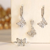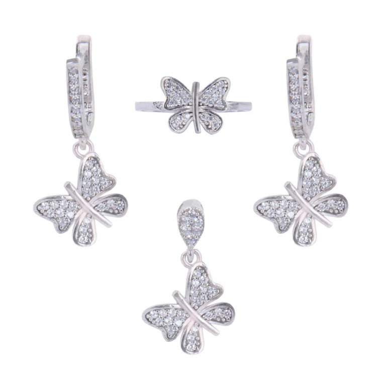 نیم ست نقره زنانه مدل نگین برلیان قالب جواهری آبکاری رادیوم کد NTRH578