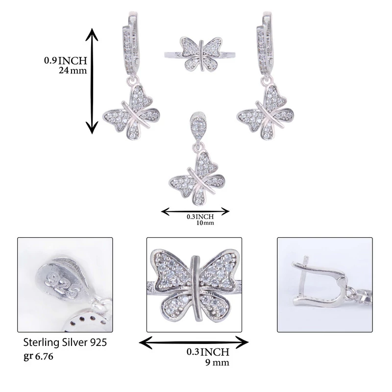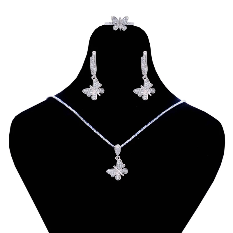 نیم ست نقره زنانه مدل نگین برلیان قالب جواهری آبکاری رادیوم کد NTRH578