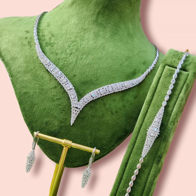 🌷 سرویس نگین دار جواهری نقره با عیار 925 جواهری با روکش و آبکاری عینا طلا نانو 🌷