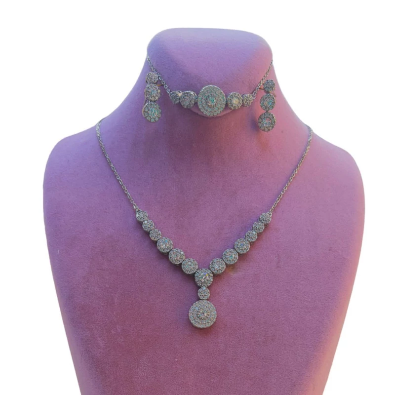 نیم ست زنجیری نقره عیار 925 مدل اشکی آویز نقره ساچ دارای گردنبند و دستبند و گوشواره میباشد و دارای جعبه اختصاصی که نیم ست داخل جعبه جواهرات سرویس به شما عزیزان ارسال میشود و این نیم ست دارای آبکاری رادیوم و ضد حساسیت بوده و برای کادو و استفاده روزمره و عروس خانم ها بهترین و خاص ترین گزینه میتواند باشد