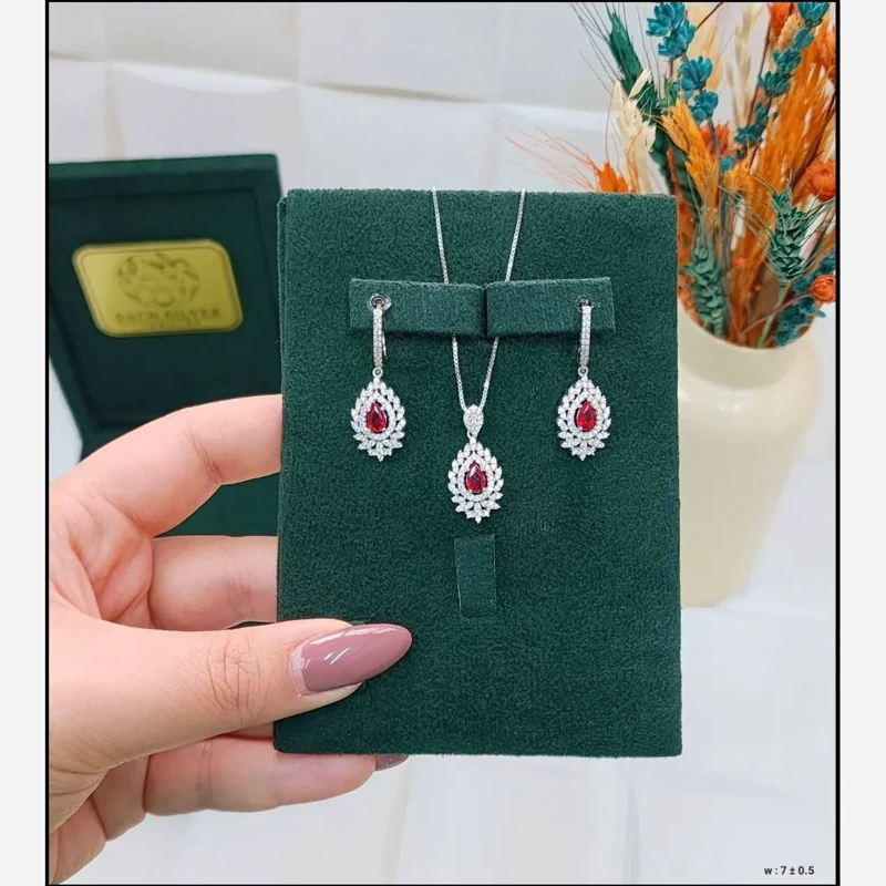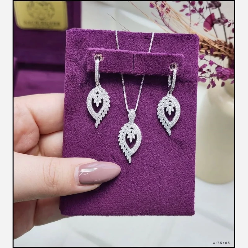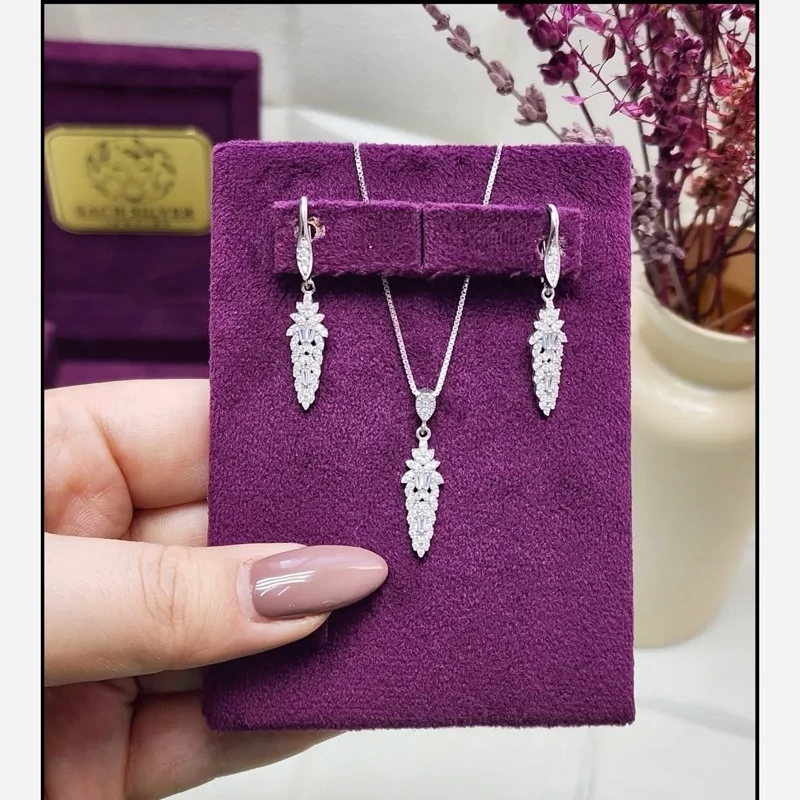 نیم ست ظریف نقره روکش طلا عینا طلا با جعبه جواهرات اعیانی مخملی کادویی رایگان و خرید بدون اجرت نقره