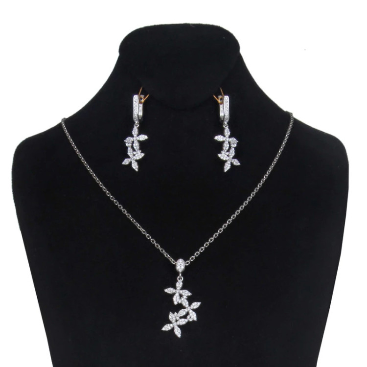 نیم ست نقره زنانه مدل مخراج برلیان طرح گل آبکاری رادیوم کد 511NTR