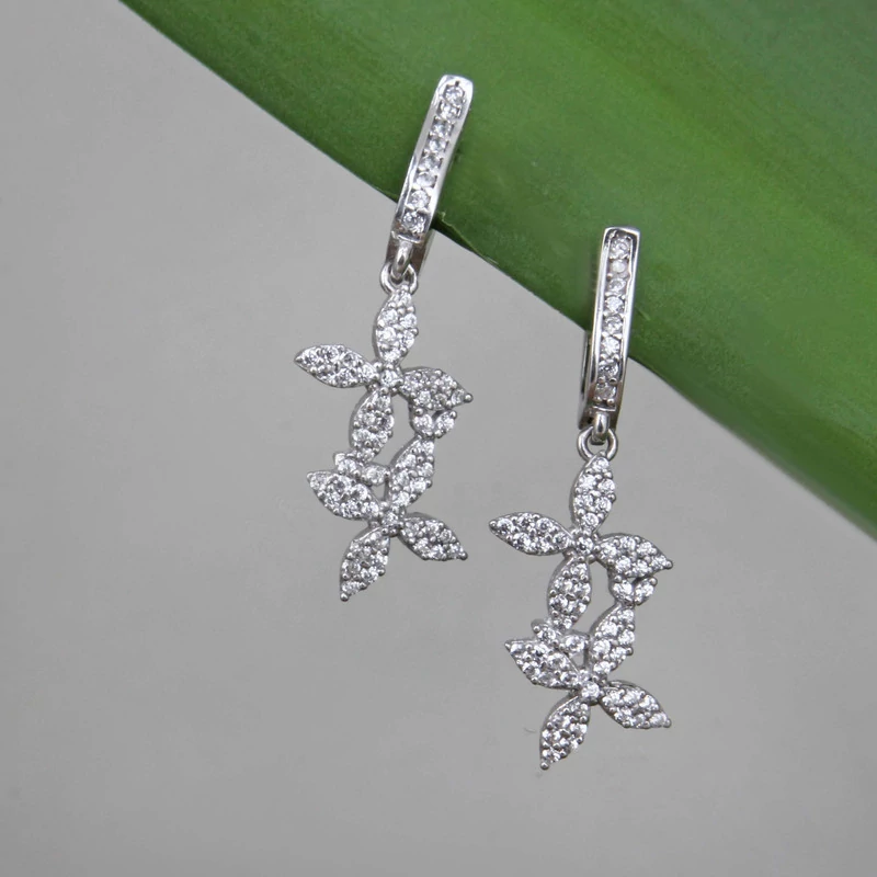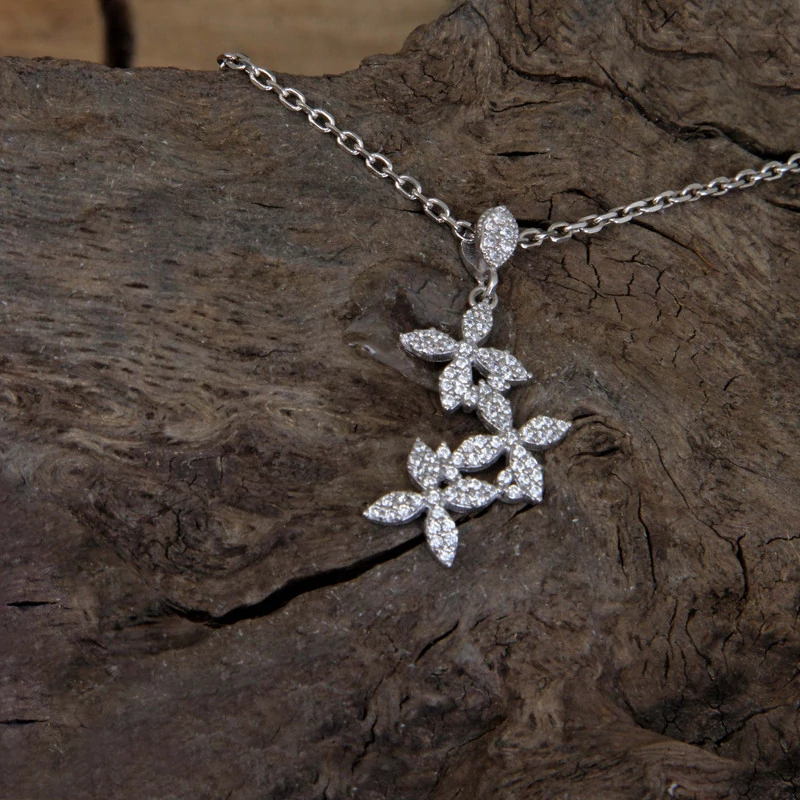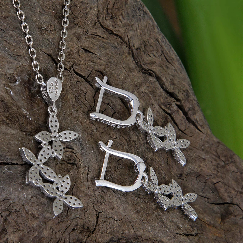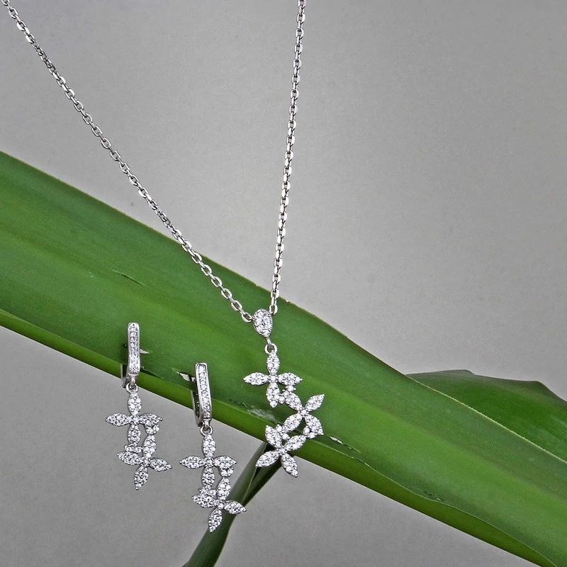 نیم ست نقره زنانه مدل مخراج برلیان طرح گل آبکاری رادیوم کد 511NTR