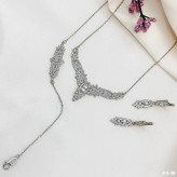 نیم ست نقره زنانه مدل برگای کد RZZDEH-0107