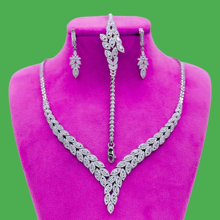 نیم ست نقره زنانه مجلسی جواهری یکی از زیباترین و پرطرفدارترین سرویس های نقره مجلسی است. خریداران عزیز دقت فرمایید که محصول خریداری شده فقط با بسته بندی موجود در سایت ارسال میشود این محصول با آب رودیوم به منظور محافظت و جلا و درخشندگی بیشتر پوشانیده که به آن جلوه جواهرگونه می دهد و پوست باعث حساسیت نمی شود. نگین های این محصول برلیان و باگت اتمی درجه یک بوده هستند. وزن درج شده در سایت حدودی بوده و + - 2 گرم در نظر برای تمامی محصولات مد نظر داشته باشین