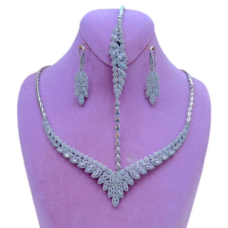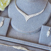 سرویس نقره زنانه مجلسی جواهری یکی از زیباترین و پرطرفدارترین سرویس های نقره مجلسی است. خریداران عزیز دقت فرمایید که محصول خریداری شده فقط با بسته بندی موجود در سایت ارسال میشود این محصول با آب رودیوم به منظور محافظت و جلا و درخشندگی بیشتر پوشانیده که به آن جلوه جواهرگونه می دهد و پوست باعث حساسیت نمی شود. نگین های این محصول برلیان و باگت اتمی درجه یک بوده هستند.