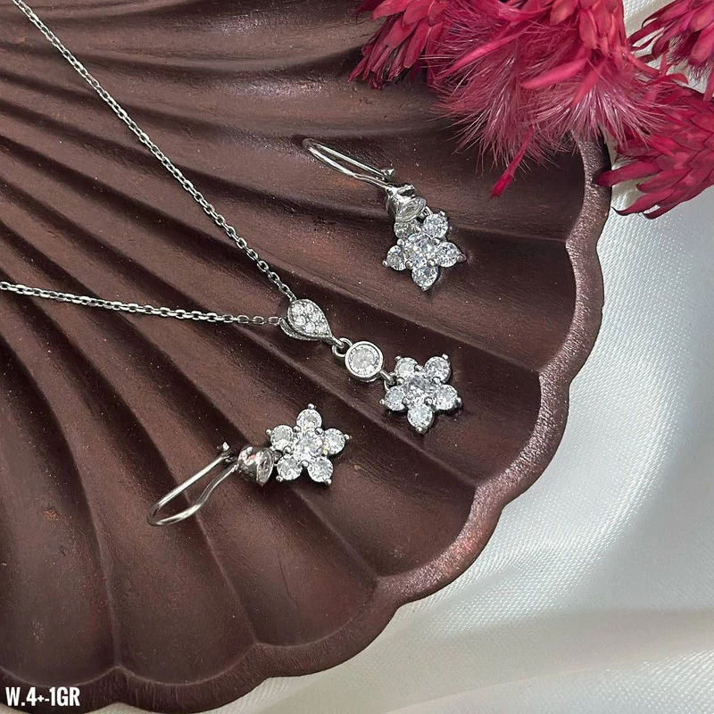 نیم ست نقره زنانه مدل فلاور ظریف کد reh-0198