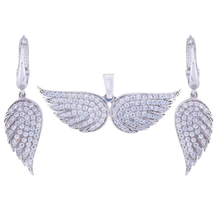 نیم ست نقره زنانه مدل طاووس بال فرشته