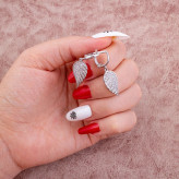 نیم ست نقره مدل بال فرشته به عیار 925 دارای روکش رادیوم(طلاسفید) می باشد،سنگهای برلیان اتمی از جنس زیرکونیا در سطح بیرونی کار مخراج کاری شده اند که جلوه ویژه ای به کار بخشیده است ،وزن نیمست حدود 6.6 گرم می باشد،کیفیت ساخت کار بسیار بالا بوده و در روکش آن از مواد حساسیت زا مانند نیکل استفاده نشده است،روکش طلاسفید و جلوه زیبا و درخشان کار باعث شده از نظر ظاهری تفاوتی با طلا نداشته باشد. نگین ها به روش میکروستینگ مخراج کاری شده اند و در برابر ضربه مقاوم هستند با این حال جهت جلوگیری از آسیب فیزیکی به کالا باید در برابر ورود ضربه شدید و تماس با مواد شیمیایی محافظت گردد.