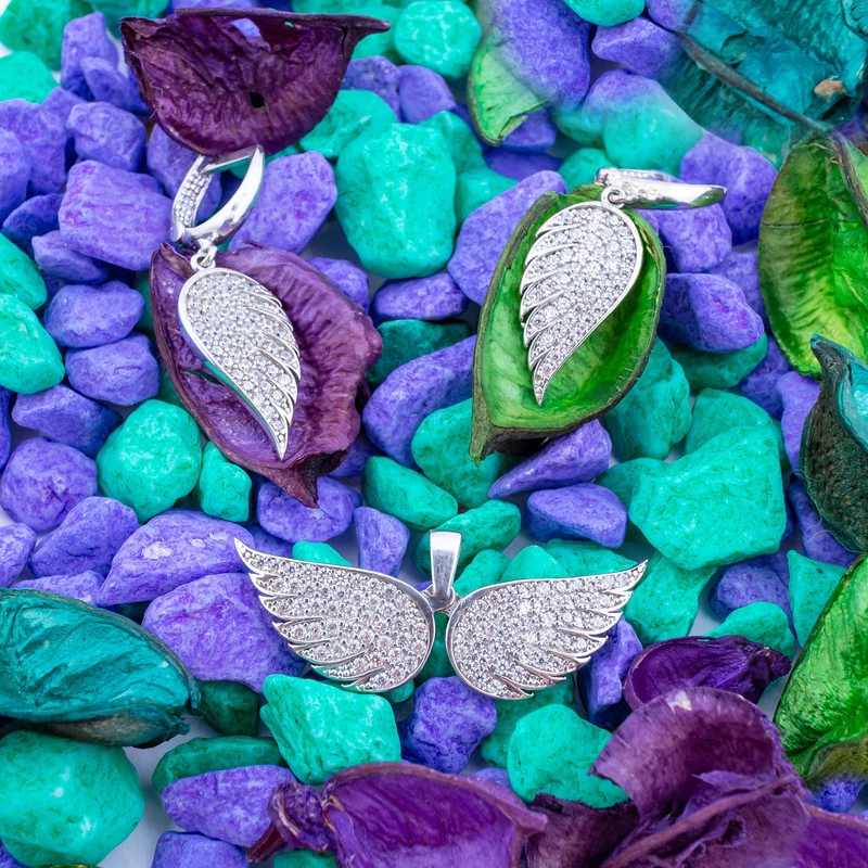 نیم ست نقره زنانه مدل طاووس بال فرشته