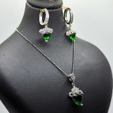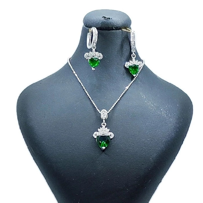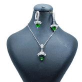 نیم ست نقره زنانه مدل سنگ زمرد طرح قلب کد 254