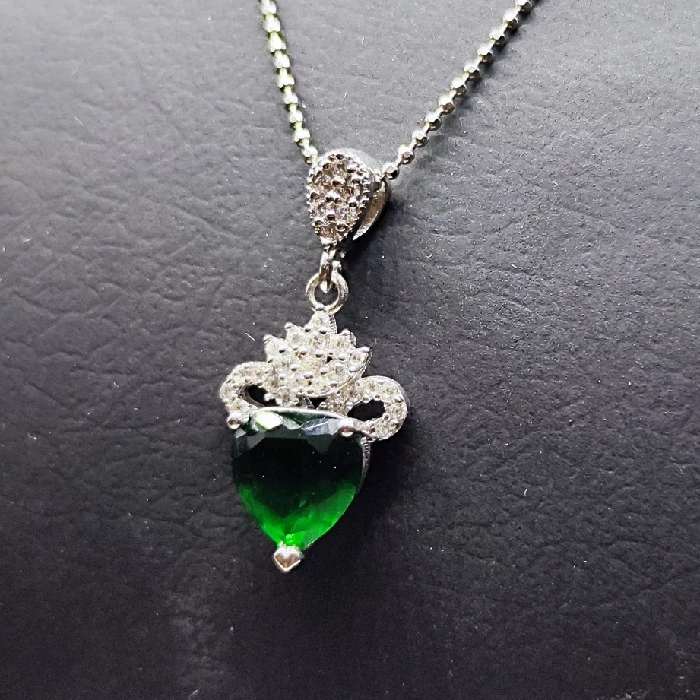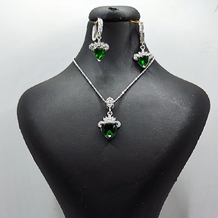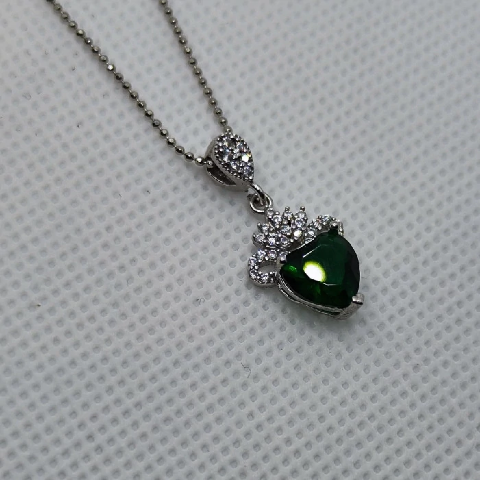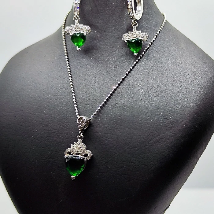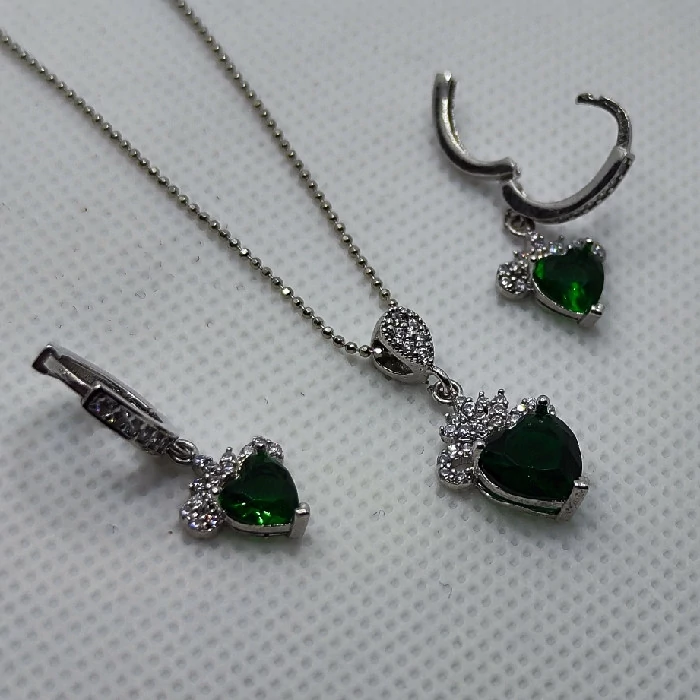 نیم ست نقره زنانه مدل سنگ زمرد طرح قلب کد 254